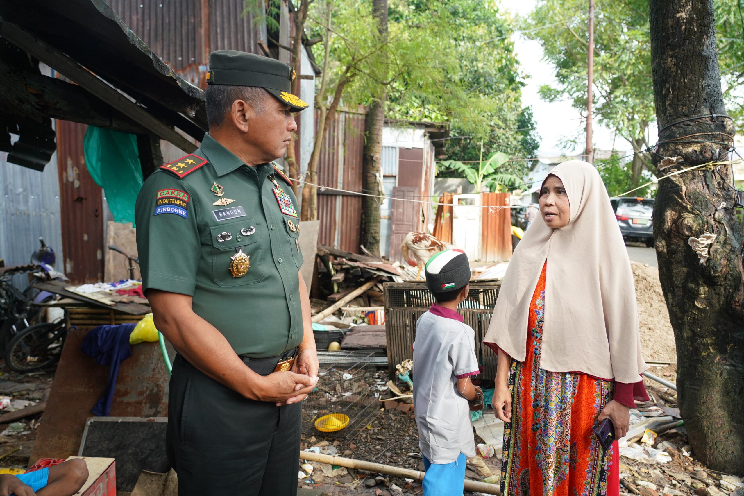 Kunjungan tersebut dilakukan setelah Pangdam menerima laporan mengenai kondisi tempat tinggal seorang guru yang baru satu tahun honor di TK Kartika, berstatus janda dengan lima orang anak.