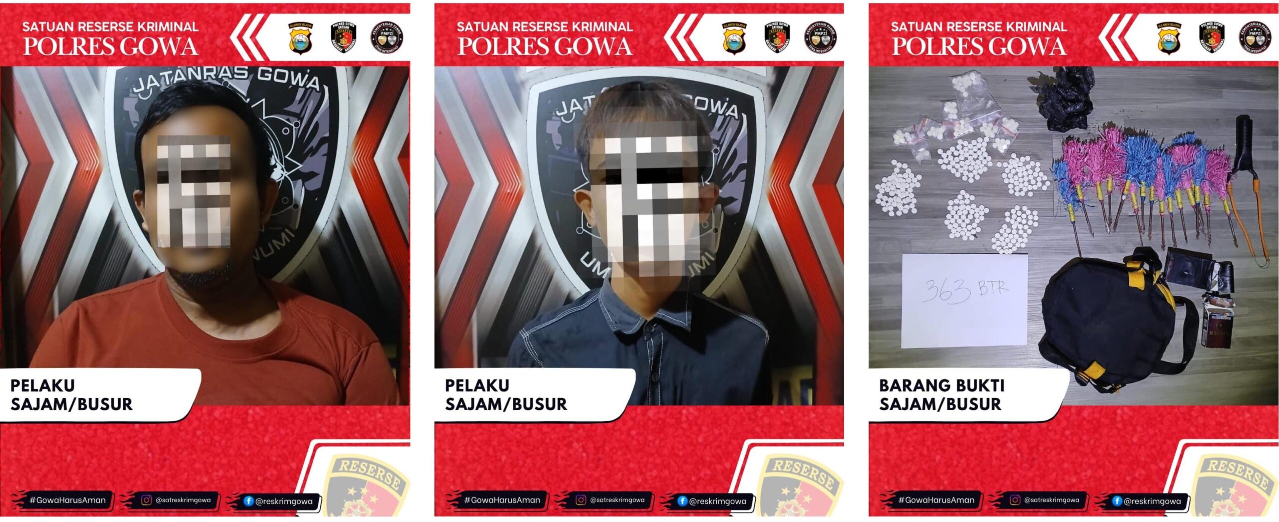 Penangkapan tersebut dilakukan berdasarkan LP/A/45/IX/2025/SPKT Res Gowa, Polda Sulsel, tanggal 28 September 2025. Adapun terduga pelaku masing-masing berinisial H (28) dan MY (16).