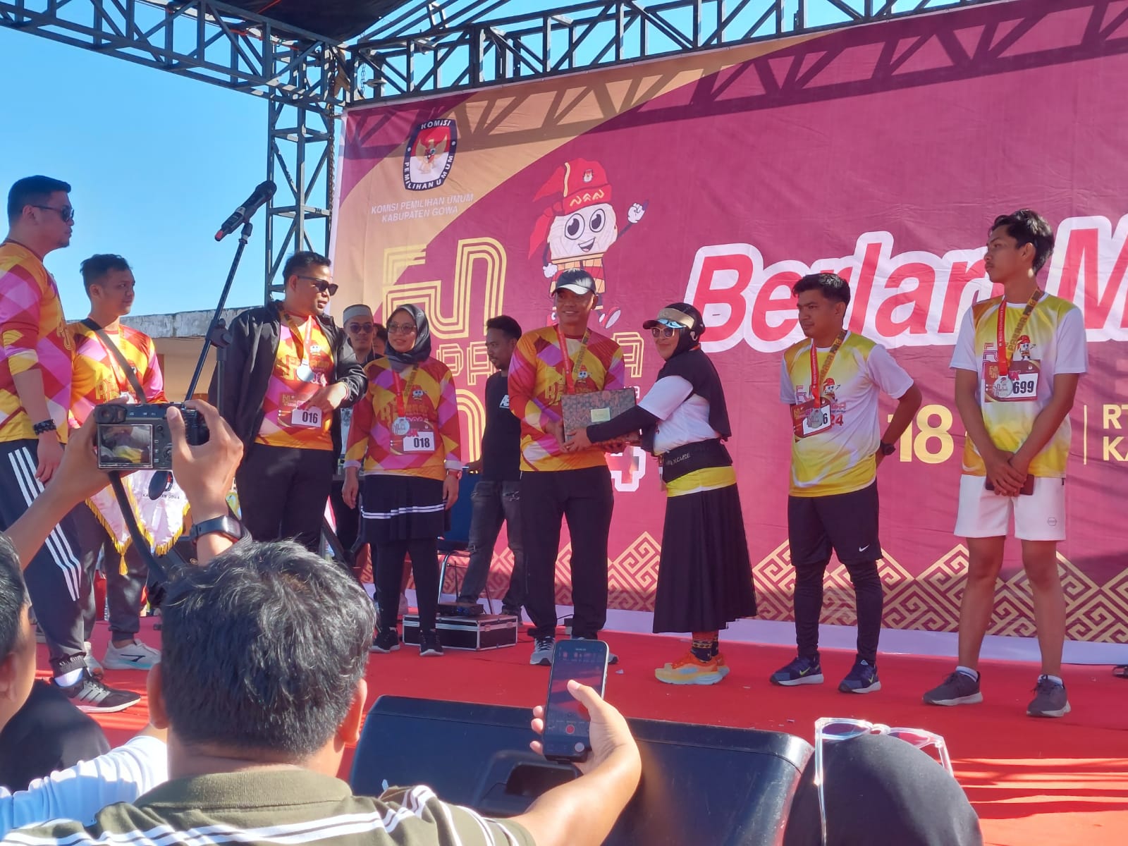 Kegiatan yang diikuti kurang lebih dan sekitar 800 peserta ini, dilepas langsung oleh Ketua KPU Gowa Fitra Syahdanul, S.Sos.