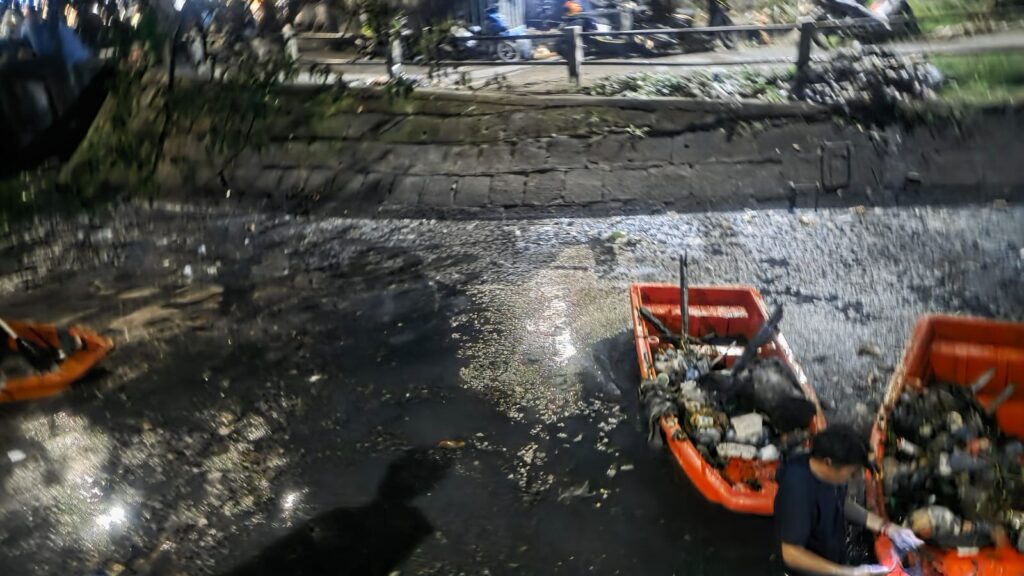 “Namun, hari ini setelah ada dibuka saluran di bagian hulu, aliran sampah langsung bergeser ke titik ini,” lanjut Syahril.