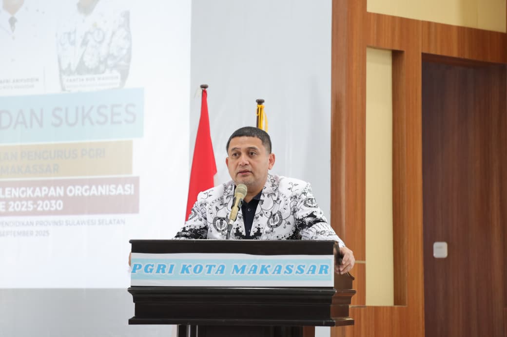 Pesan itu disampaikan Munafri saat menghadiri Pengukuhan Pengurus Persatuan Guru Republik Indonesia (PGRI) Kota Makassar Masa Bakti ke-23 Tahun 2025–2030 yang digelar di Balai Besar Penjaminan Mutu Pendidikan (BBPMP) Sulawesi Selatan, Jl. AP Pettarani, Kamis (18/9/2025).